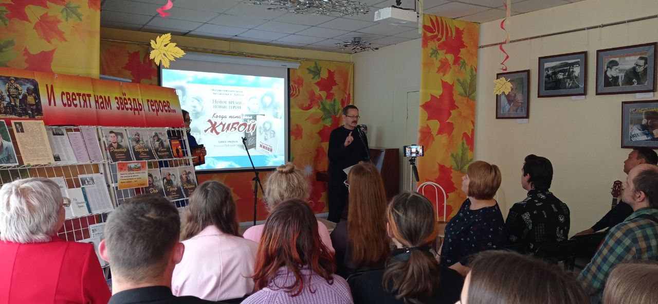7 октября студенты группы ЭБУ-25-1 были приглашены на презентацию книги Максима Стефановича “Когда папа был живой… ” Перед гостями выступил автор, который рассказал об истории создания книги. Она посвящается землякам-жителям посёлка Дарасун, не вернувшимся с С В О . Ребят поразило, какой ценой достаётся победа. На дарасунском кладбище покоятся около 50 погибших в этой операции. Это много для такого маленького посёлка. Когда студентов спросили есть ли здесь те, у кого отцы-участники этих событий, около 7 подняли руки. Ребята посмотрели фильм, где автор книги беседует с родственниками погибших. Эти интервью полны боли, горя, страха за оставшихся детей. Родители погибших сыновей говорят, что жизнь для них потеряла смысл. Автор сделал большую работу для молодёжи: заставил задуматься о важных вещах и помнить о тех, кто не вернулся. Приглашённые гости почтили их память минутой молчания, и по-новому прочувствовали слова прекрасной песни “Журавли”. Мероприятие состоялось в Забайкальской краевой детско-юношеской библиотеке им. Г. Р. Граубина